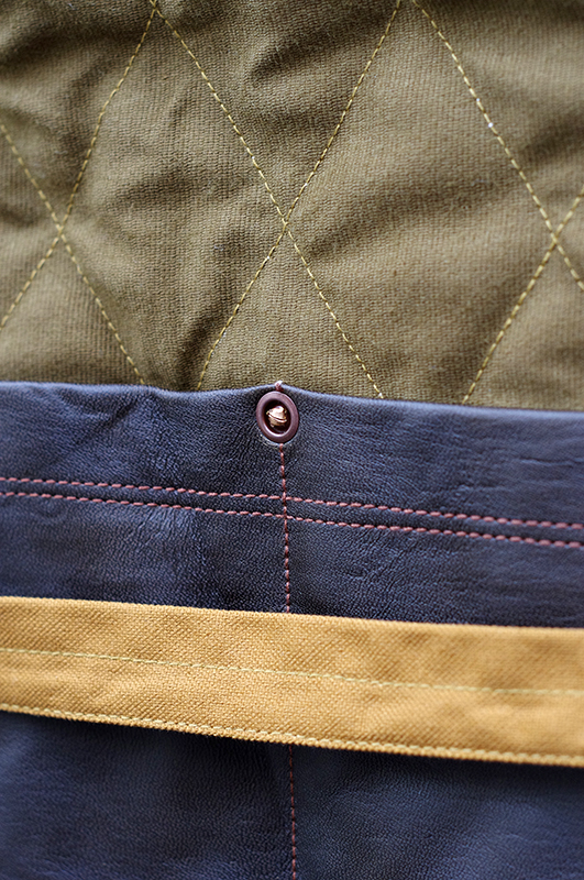 後裾にはレザーで作られた大きなポケットが付けられ機能性がありながらも防寒も兼ねた仕様となっている。