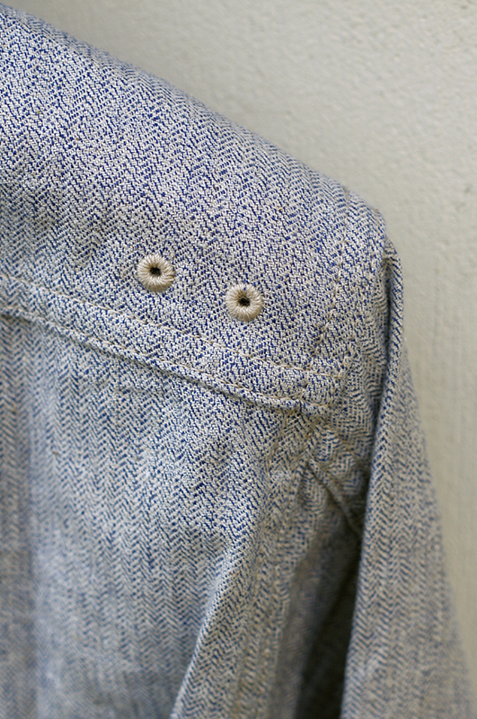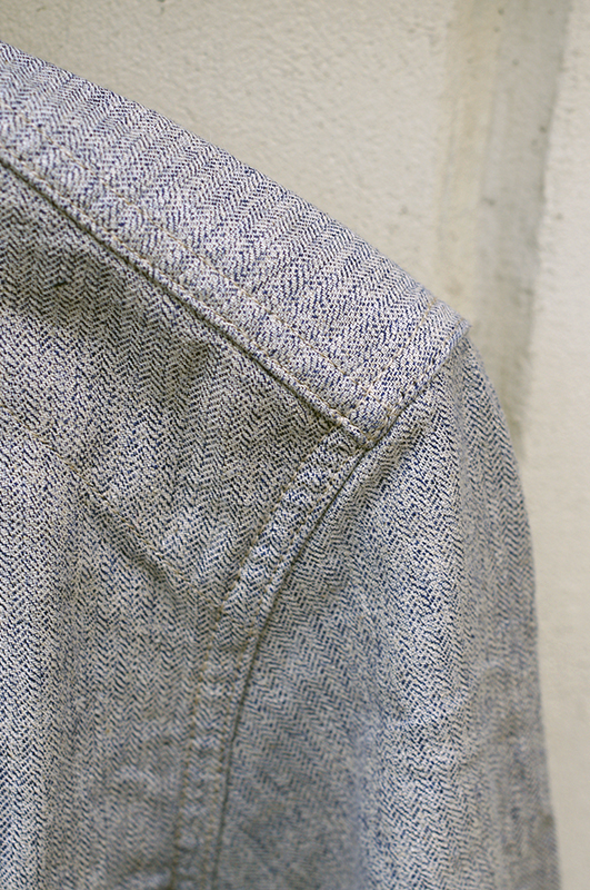 ・衿の造形、前後差のバランス、前振りなアームホールの形状、微妙なシェイプのラインで構成している。