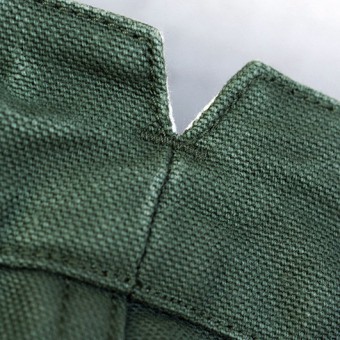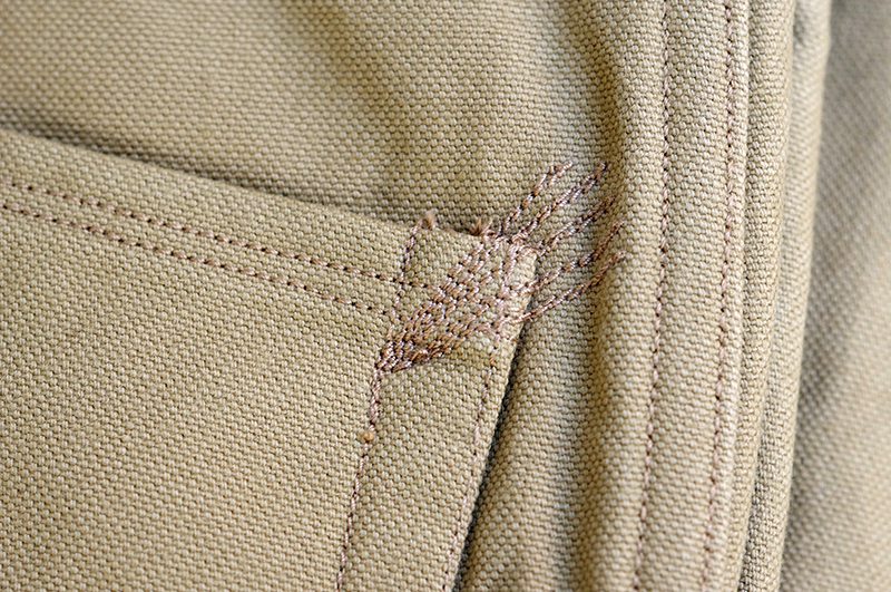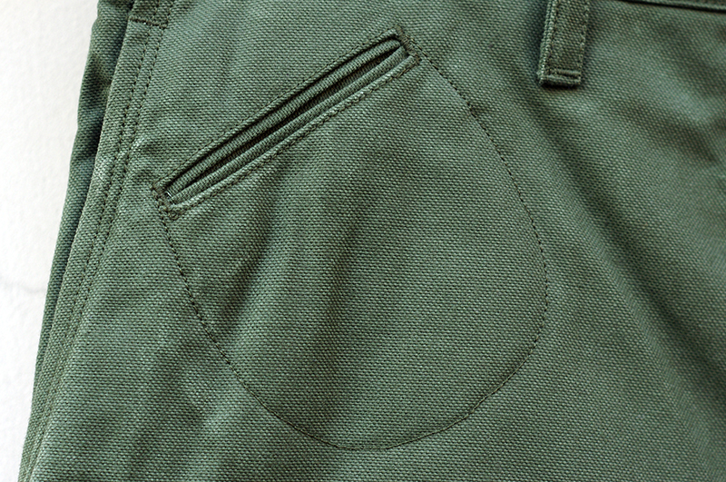 ポケットを押さえる閂止めがわりのステッチワークが静かな主張として現れている。