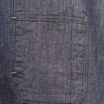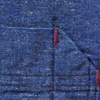 左右不対称なポケットやウォッチポケットなど作業着らしい作りです。