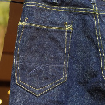 ・前中心、脇部の細かなステッチワークに加え後面ポケットの形状を変更した。