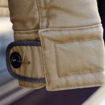 袖山から袖口にかけて大きくとられたあて布は薄いシンサレートを補う為のものとしている。