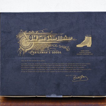 ドレスシューズのような木型、細い糸での縫製など古い時代の靴の特徴が盛り込まれています。