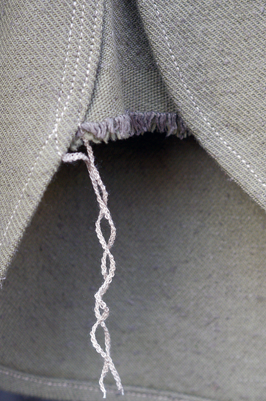 ・繊細なミシン技術が必要な、1mm巾ステッチが生地の雰囲気と相まって、絵を描いているような線を表現。