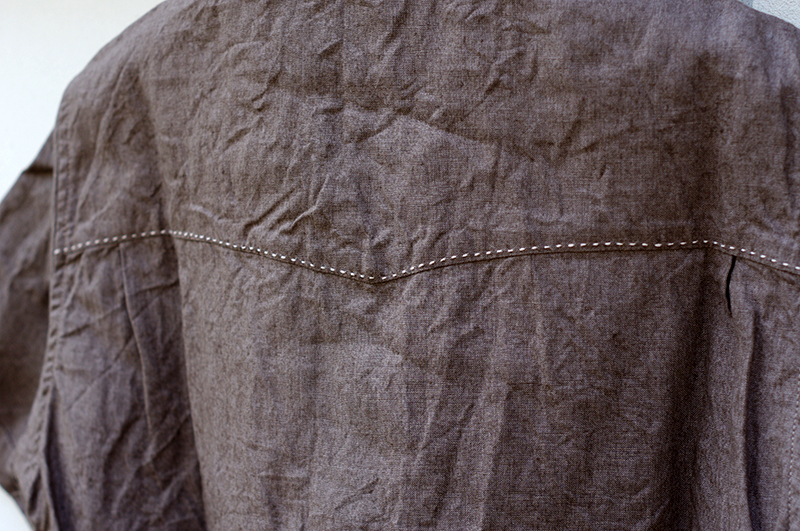 ・衿、釦で引き締め、幅広のヨークで男らしさを表現。