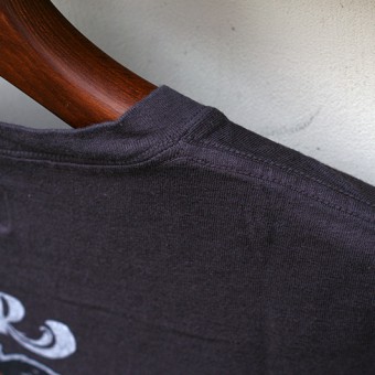 製品硫化染→プリント→ボールバイオウォッシュ→タンブラー乾燥の加工を入れる事により