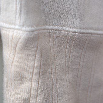2色の糸で編み上げているリブ地は少しのツートンとなっており、