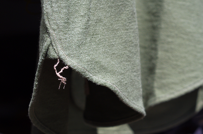 ワンピースで構築された独特な形状をした衿が特徴なシャツ。