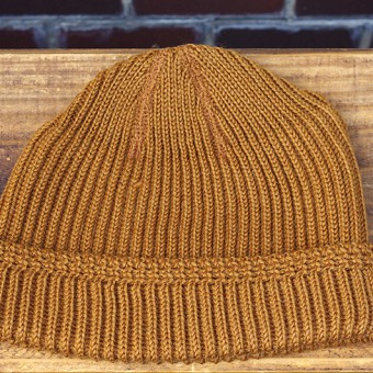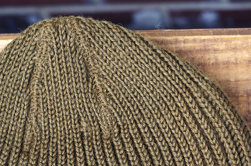古い時代のワッチキャップを赤十字軍(Red Cross)ニットと同様の糸を用いて固く編み上げています。