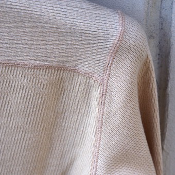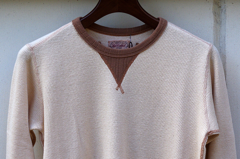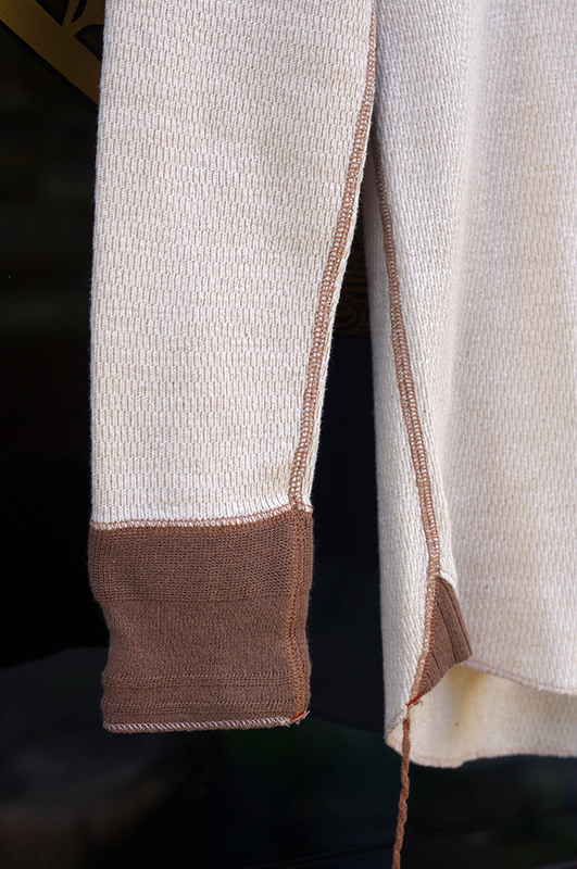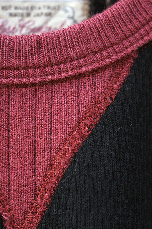 配色が特徴的な編み立てリブを使用している。