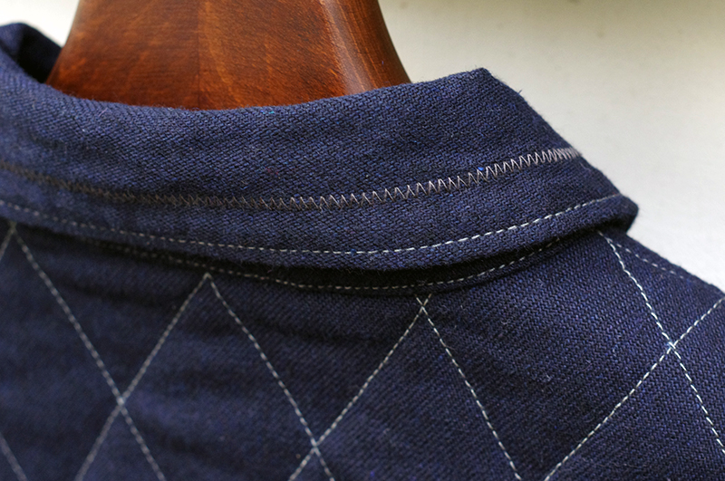 後身頃は中綿を大胆にキルティングステッチで押さえて、