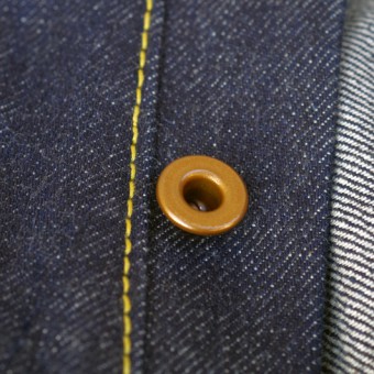 染めは、インディゴ100%の特濃色(数回、重ね染めの行程をふむ)。