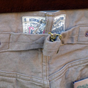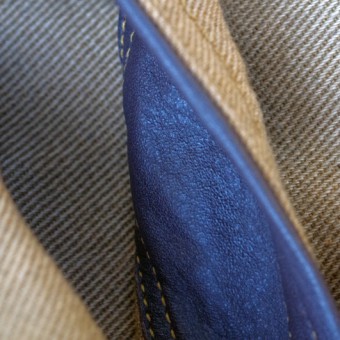 後ろポケット口にはそれぞれ同色系のレザーを配色。