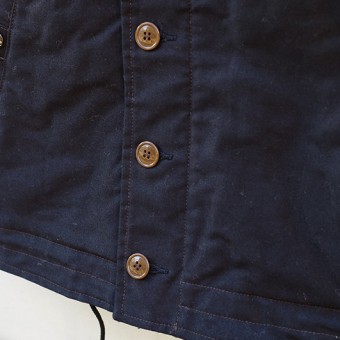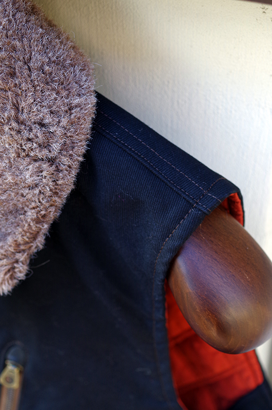 襟は、アルパカ混のウール素材で保温性を高め、身頃裏地はシンサレートを使用したキルティングを使用。