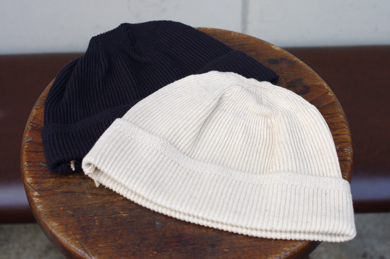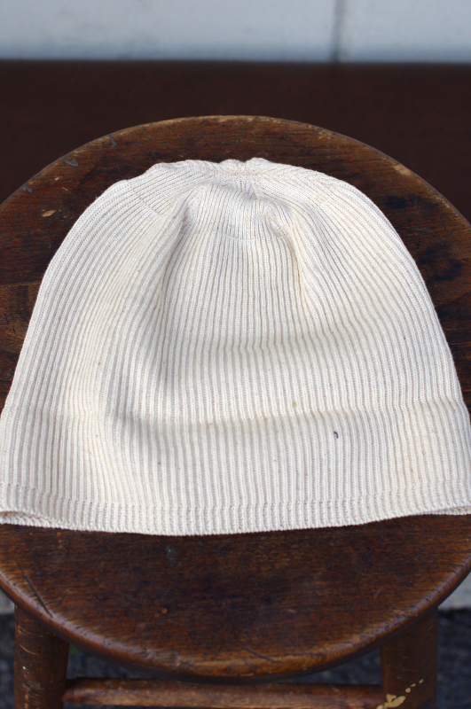 コットンヘンプの糸で編みたてたアーリースタイルのワッチキャップ。