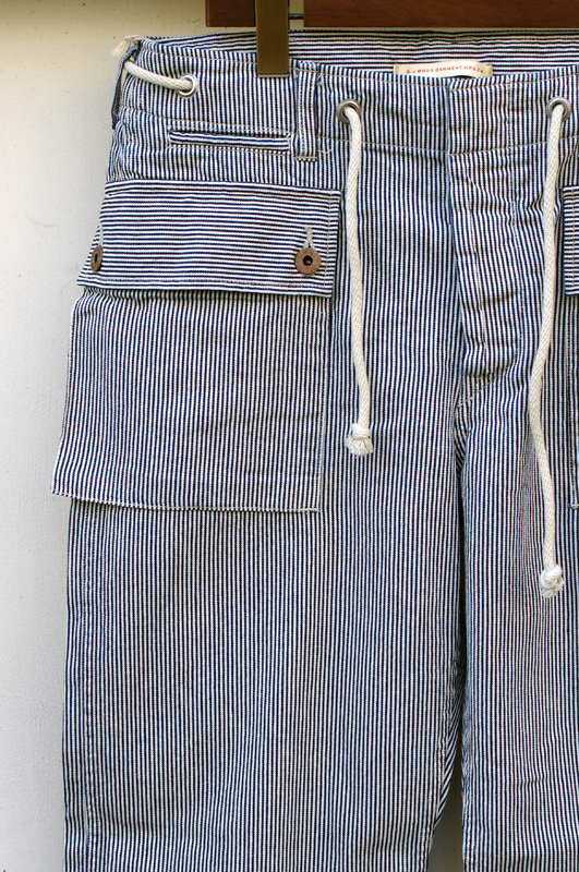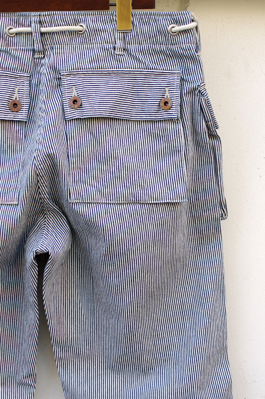 HICKORY STRIPE ・28(ウェスト周80 ヒップ100 渡り巾32.8 股上直線27 股下78 ヒザ巾25 裾巾23) ・30(ウェスト周83 ヒップ104 渡り巾34 股上直線29 股下78 ヒザ巾26 裾巾24) |