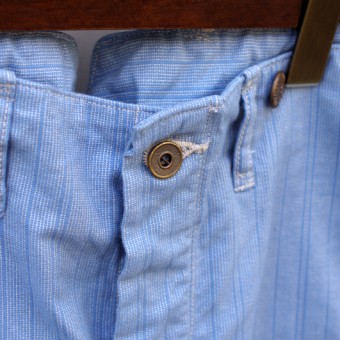カーブしたポケットが特徴的なこのトラウザーは1900年代初頭のワークウェアからのインスパイアになります。