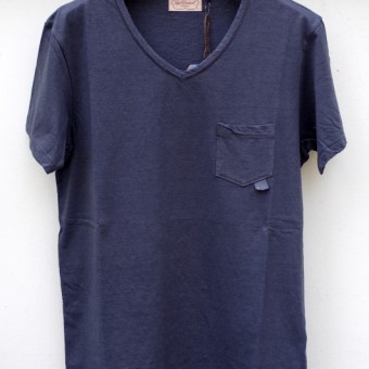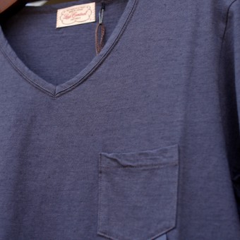 コットンリネンの混合素材で通気性も良く、雰囲気のある杢糸で編み込まれたポケットTシャツ。