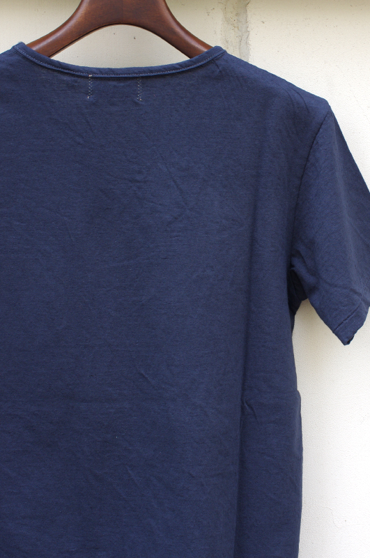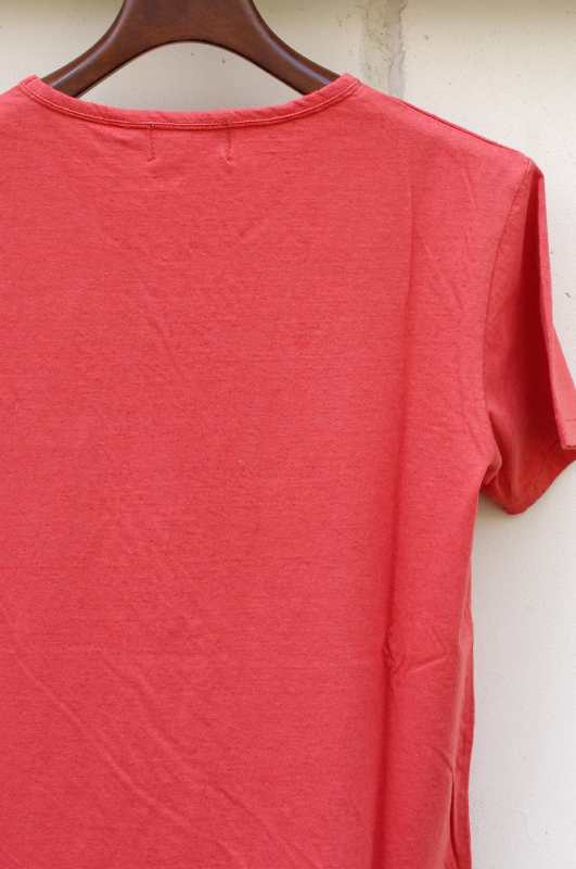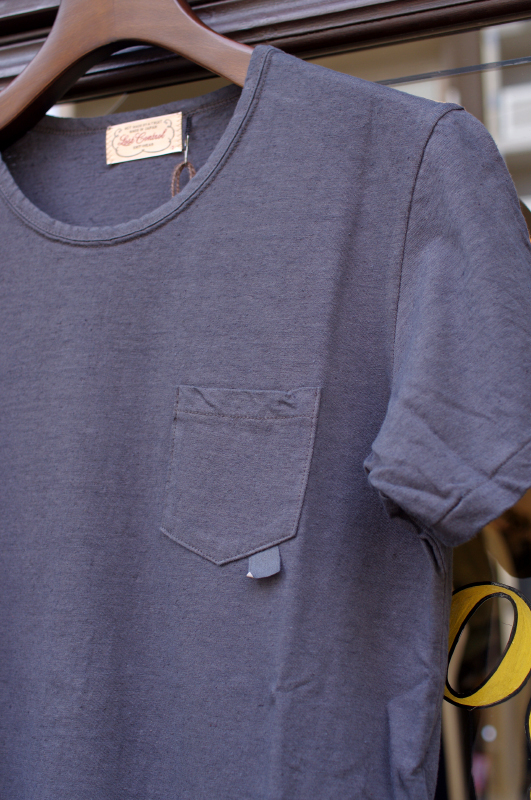 コットンリネンの混合素材で通気性も良く、雰囲気のある杢糸で編み込まれたポケットTシャツ。
