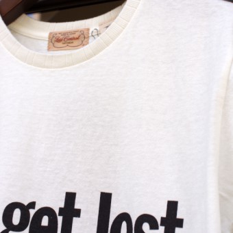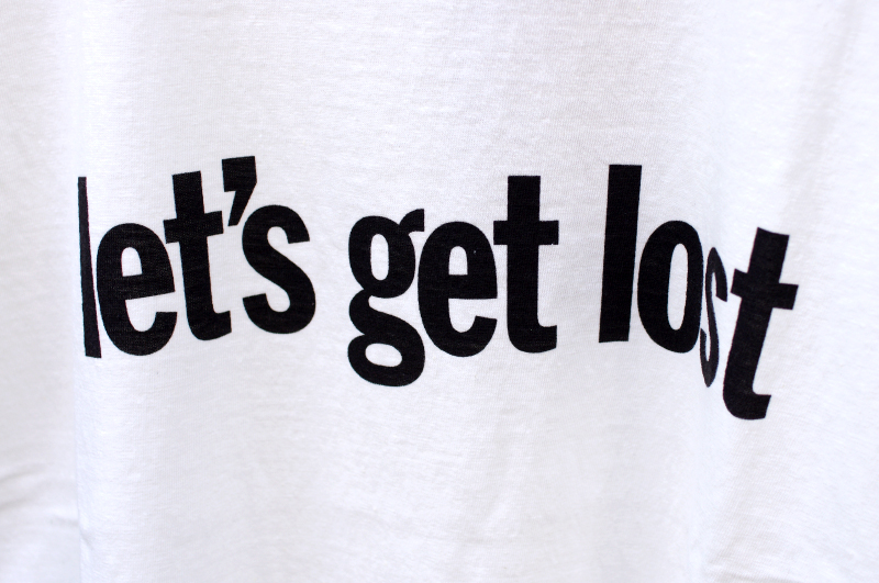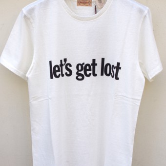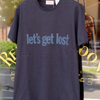 Let’s Get Lost(一緒にどこかへ消えよう)のロゴをフロントへ大胆に配置したメッセージTシャツ。