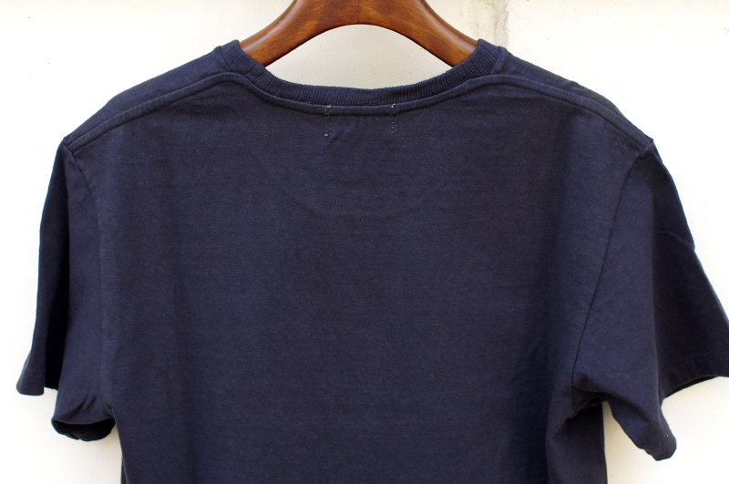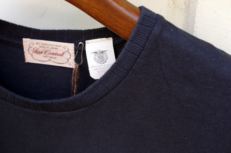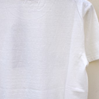 継続的に使用しているムラ糸で編み込まれたボックスシルエットの丸胴オリジナルボディーのグラフィックTシャツ。