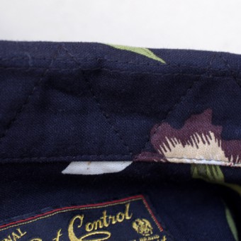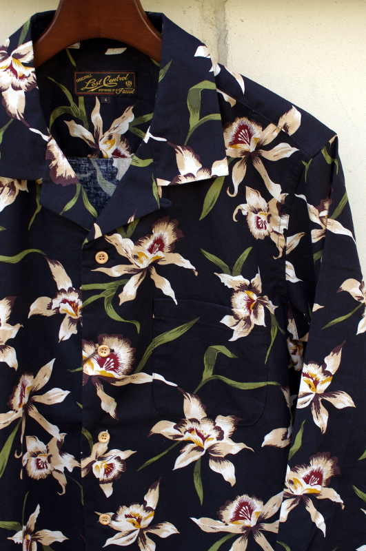 綿85%、麻15%の生地にハイビスカスの柄を描いた素材を使用したハワイアンシャツ。