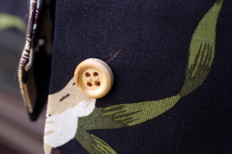 可能な限りデザインを削ぎ落としウッドボタン、ボックス裾、といったディティールを残す事により