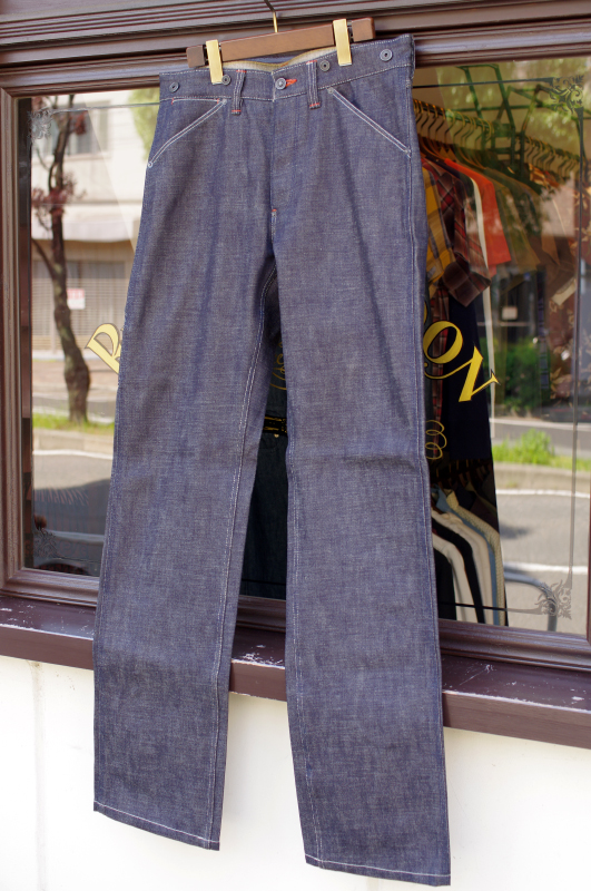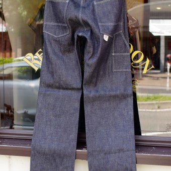 13.5ozりジットデニムを使用したワークパンツ。野暮ったくない程度の太めのストレートレッグシルエット。