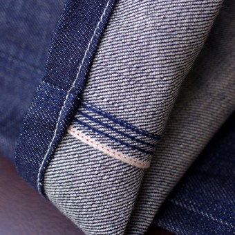 脇のシームはセルビッチ使い。布パッチ仕様。いわゆるペインターパンツだがハンマーループを排除。