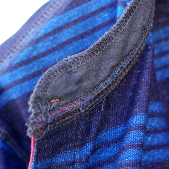 濃淡で差別化されたインディゴ染めボーダーストライプのアンダーカットソーシャツ。