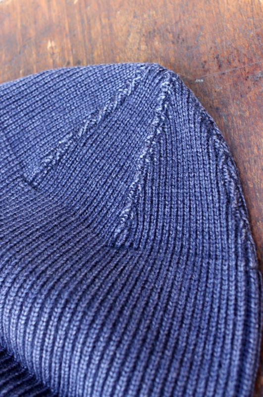 カーディガン、UVネックセーターと同様に色が抜けてしまったニットキャップがインスピレーション。