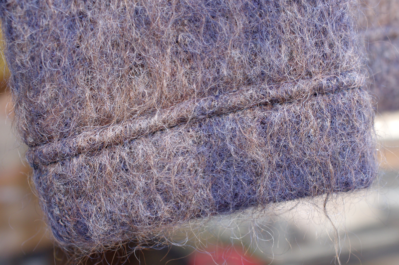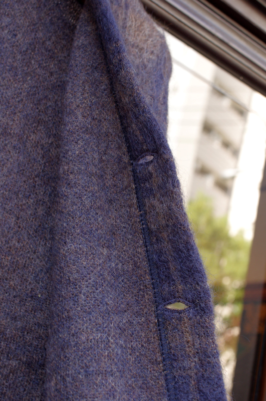毛足の長いモヘアウールの糸で編んだカーディガン。