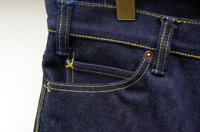 染めは、インディゴ100%の特濃色(数回、重ね染めの行程をふむ)。