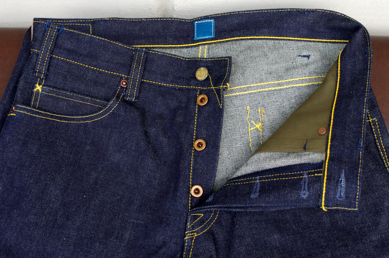 染めは、インディゴ100%の特濃色(数回、重ね染めの行程をふむ)。
