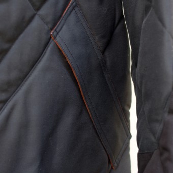 擦れやすい袖口から肘にかけてナイロン素材を補強。