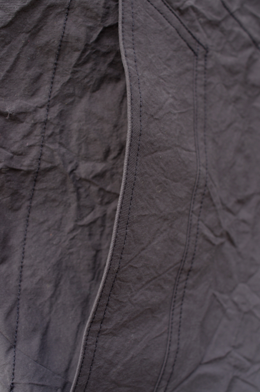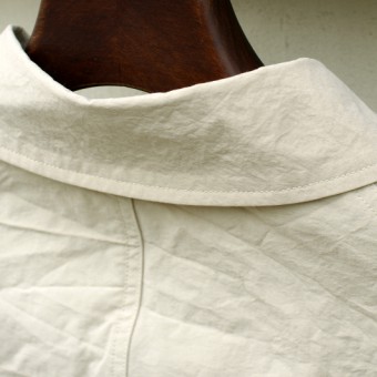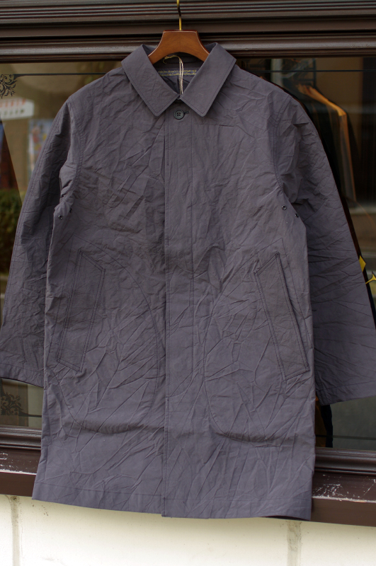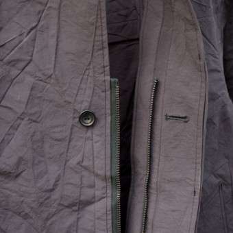 シュリンクされたナイロン生地を使用したコート。