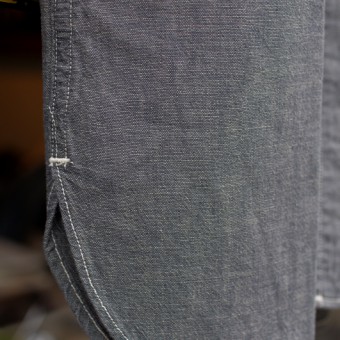 様々なヴィンテージディティールに、麻を混ぜた清涼感のあるシャンブレーが