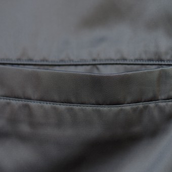 弱撥水性を施したナイロンツイルは、光沢があり、存在感を助長。