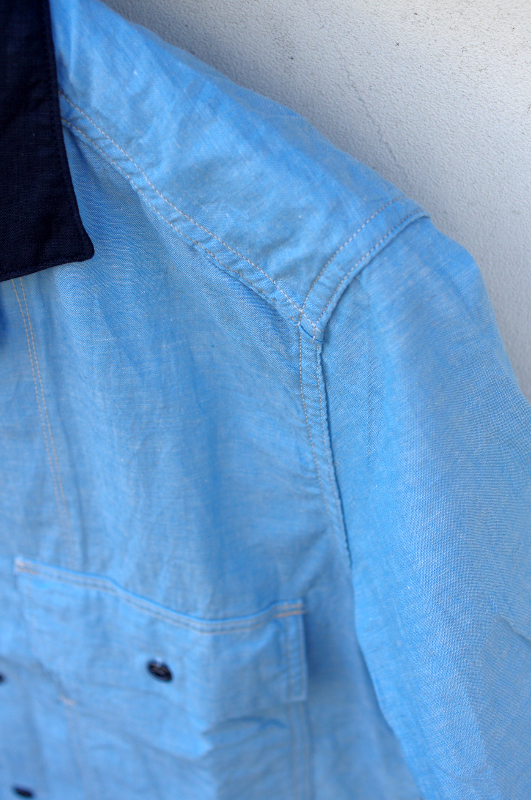 綿麻レーヨンの糸を使い、旧式セルヴィッチ織機で織り上げた生地は、軽量な素材ながら、表情は豊な仕上がり。