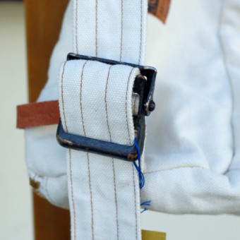 38mm巾のベルトアジャスターとして、鉄製ガチャバックルを配置。