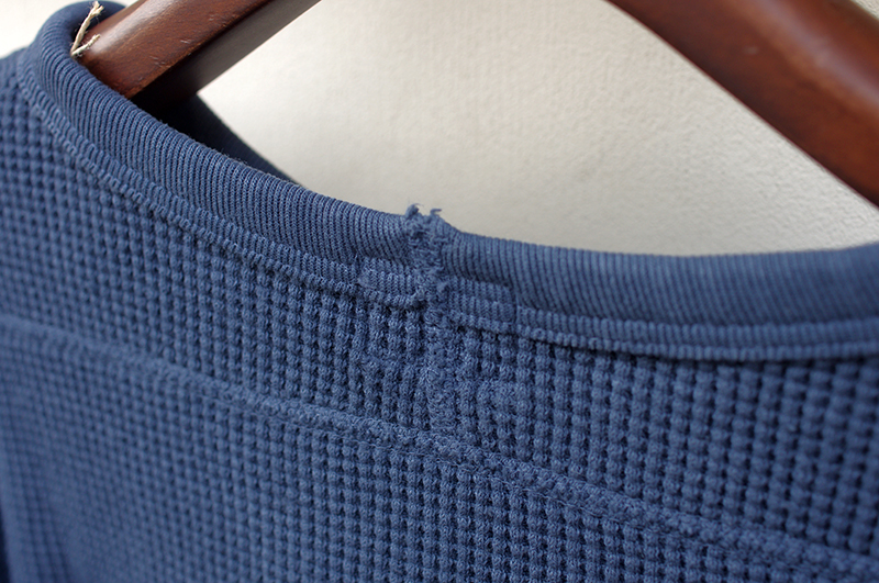 素材は26/2 BDワッフルを使用し、カラーによって加工を変えております。