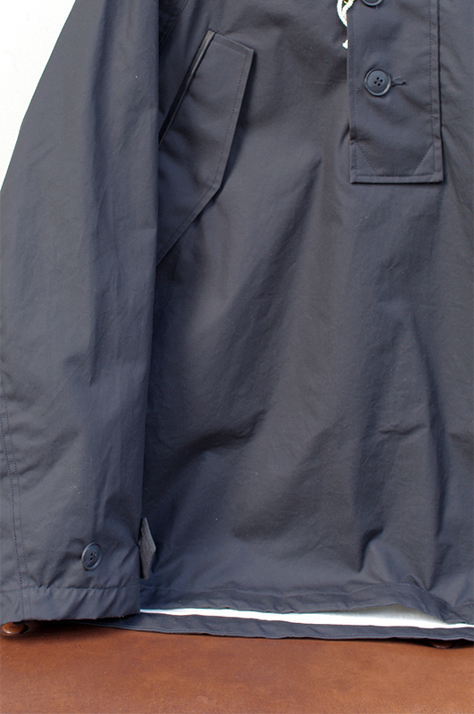 袖口には隠しリブ、腰ポケットは袋が左右繋がっており、脇にはウォームポケットを付けました。