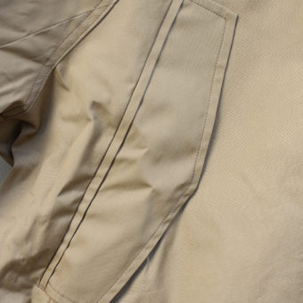 袖口には隠しリブ、腰ポケットは袋が左右繋がっており、脇にはウォームポケットを付けました。