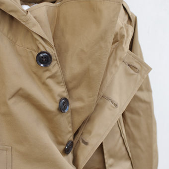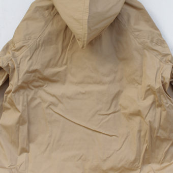 BEIGE (Shell) COTTON 100% (袖口リブ) ACRYL 63%, WOOL 27%, POLYULETHAN 2% (裏地) COTTON 100% (フード裏地) NYLON 100% |