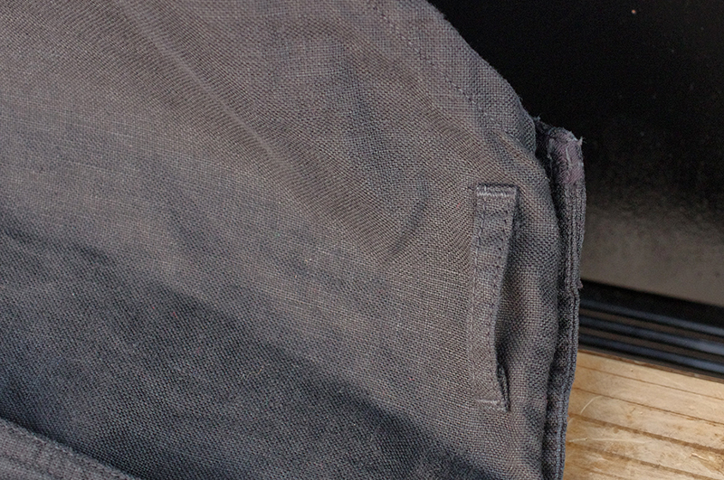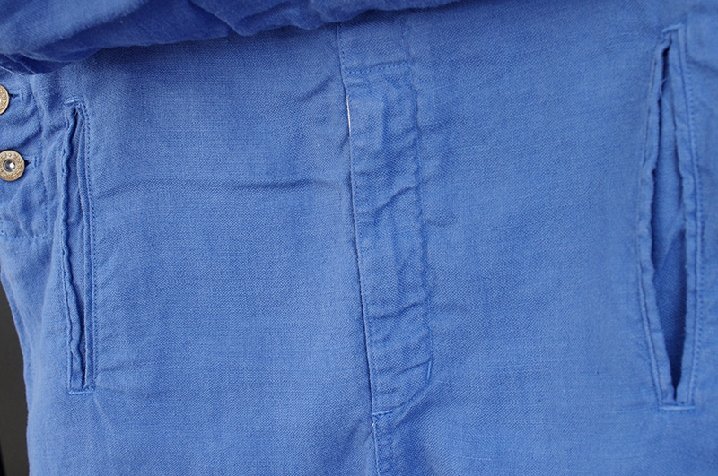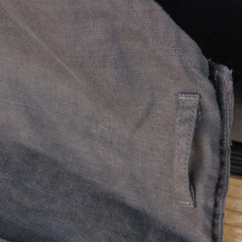 太番手のLINEN糸を使用しておりますが生地を優しく叩きほぐす事によりソフトで肌触りの良い生地になっております。