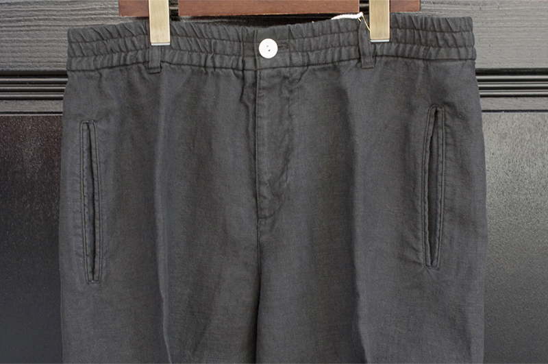 ディティールはウェストゴム仕様ながらウェストベルト通しも付いているのでラフな日も少しお出かけも対応可能です。