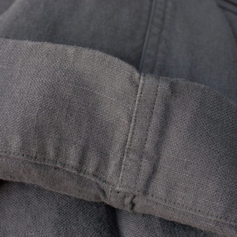 太番手のLINEN糸を使用しておりますが生地を優しく叩きほぐす事によりソフトで肌触りの良い生地になっております。
