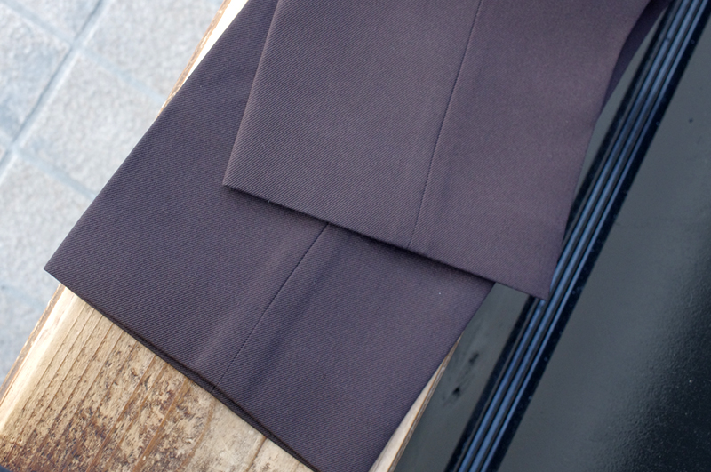 素材は日本が誇る毛織物の叡知を終結させた超細番手を極限まで打ち込みウレタン樹脂含浸による洗練されハリ感もある